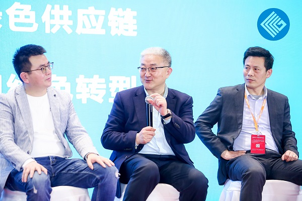 大会进入尾声,是一个高端对话的环节,由北京印刷学院青岛分院院长朱磊主持。物流信息互通共享技术及应用国家工程实验室主任相峰、本来生活网总监王恒、上海灰度环保科技有限公司研发中心总监庄士颐、美的电器包装设计主任工程师刘金林、北京一撕的物流技术有限公司合伙人副总裁吴前兵就“如何构建电商快递物流绿色供应链、实现快递包装全生命周期绿色转型”这一主题进行了热烈的发言和讨论。