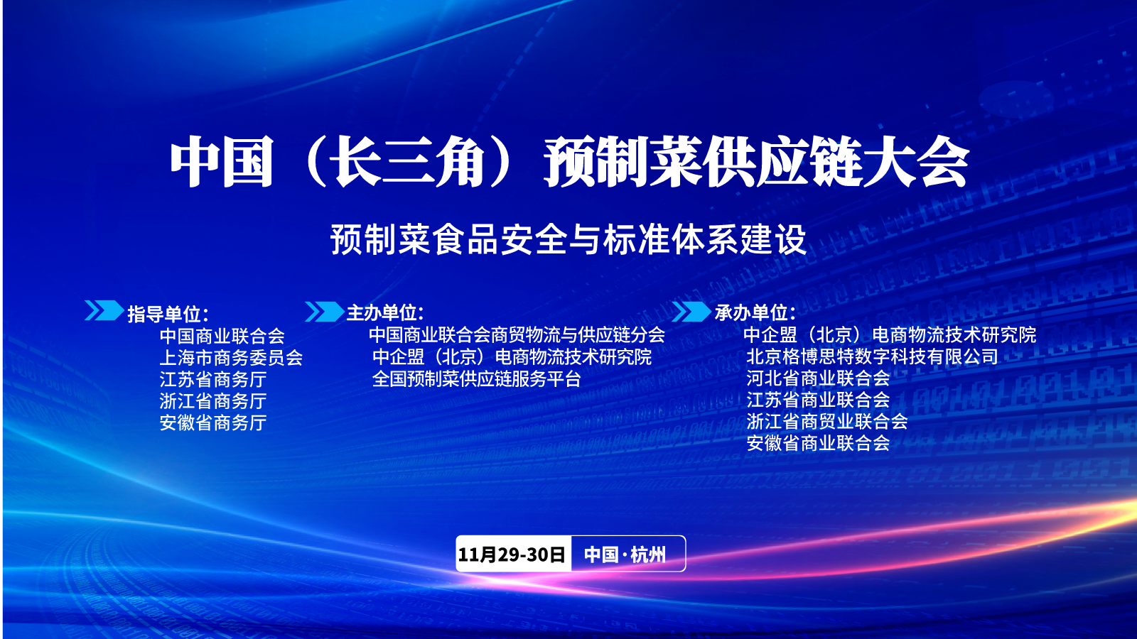 “中国(长三角)预制菜供应链大会”是中国商业联合会商贸物流与供应链分会、中企盟(北京)电商物流技术研究院全国预制菜供应链服务平台举办的首场区域活动,定于2023年11... ... 【看详细>>>】